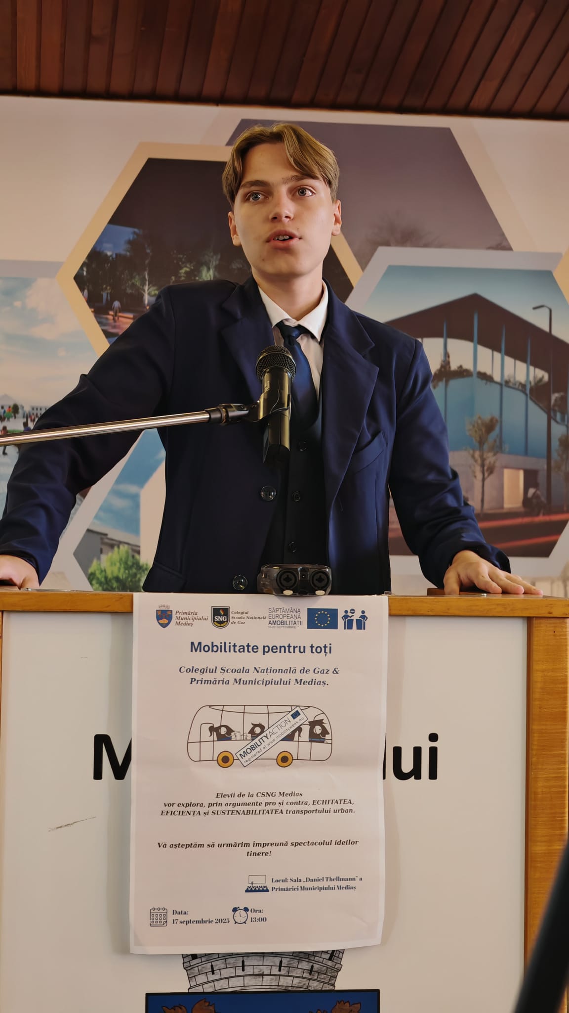 Cu ocazia Săptămânii Europene a Mobilității, Colegiul „Școala Națională de Gaz” și Primăria Municipiului Mediaș au organizat miercuri, 17 septembrie 2025, începând cu ora 13:00, în Sala Mare a Primăriei, evenimentul „Mobilitate pentru toți”.