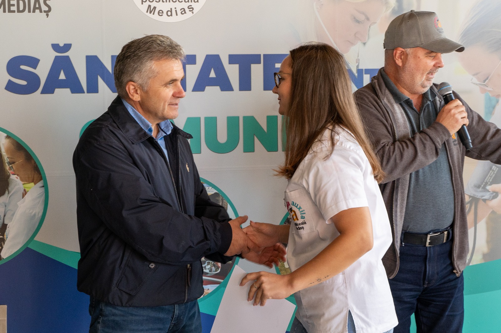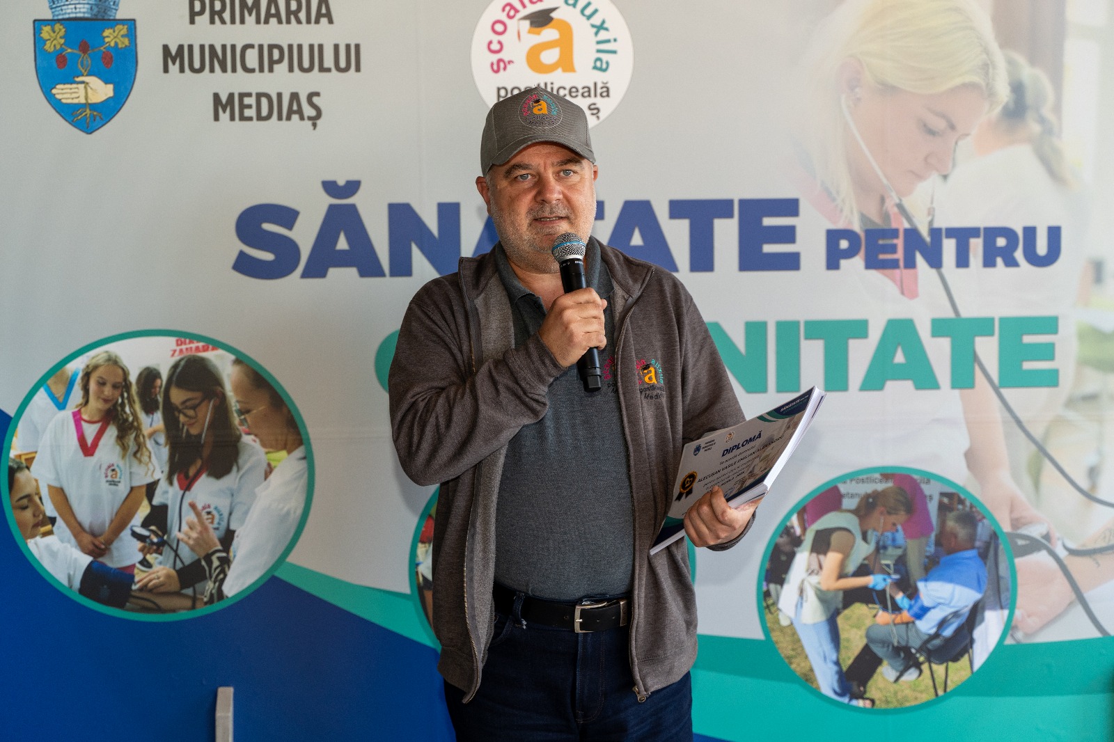 „Parteneriatul dintre Primăria Municipiului Mediaș și Școala Postliceală Auxila este deja de câțiva ani. Ne-am întâlnit astăzi pentru a le mulțumi tuturor pentru faptul că se implică într-o activitate extrem de importantă în folosul medieșenilor. Cu siguranță, foarte mulți medieșeni au putut să observe Cortul Auxila în diverse cartiere ale orașului. Le mulțumesc tuturor și îi asigur pe toți că acest parteneriat va fi și în anii care urmează”, a declarat primarul municipiului Mediaș, domnul Gheorghe Roman.