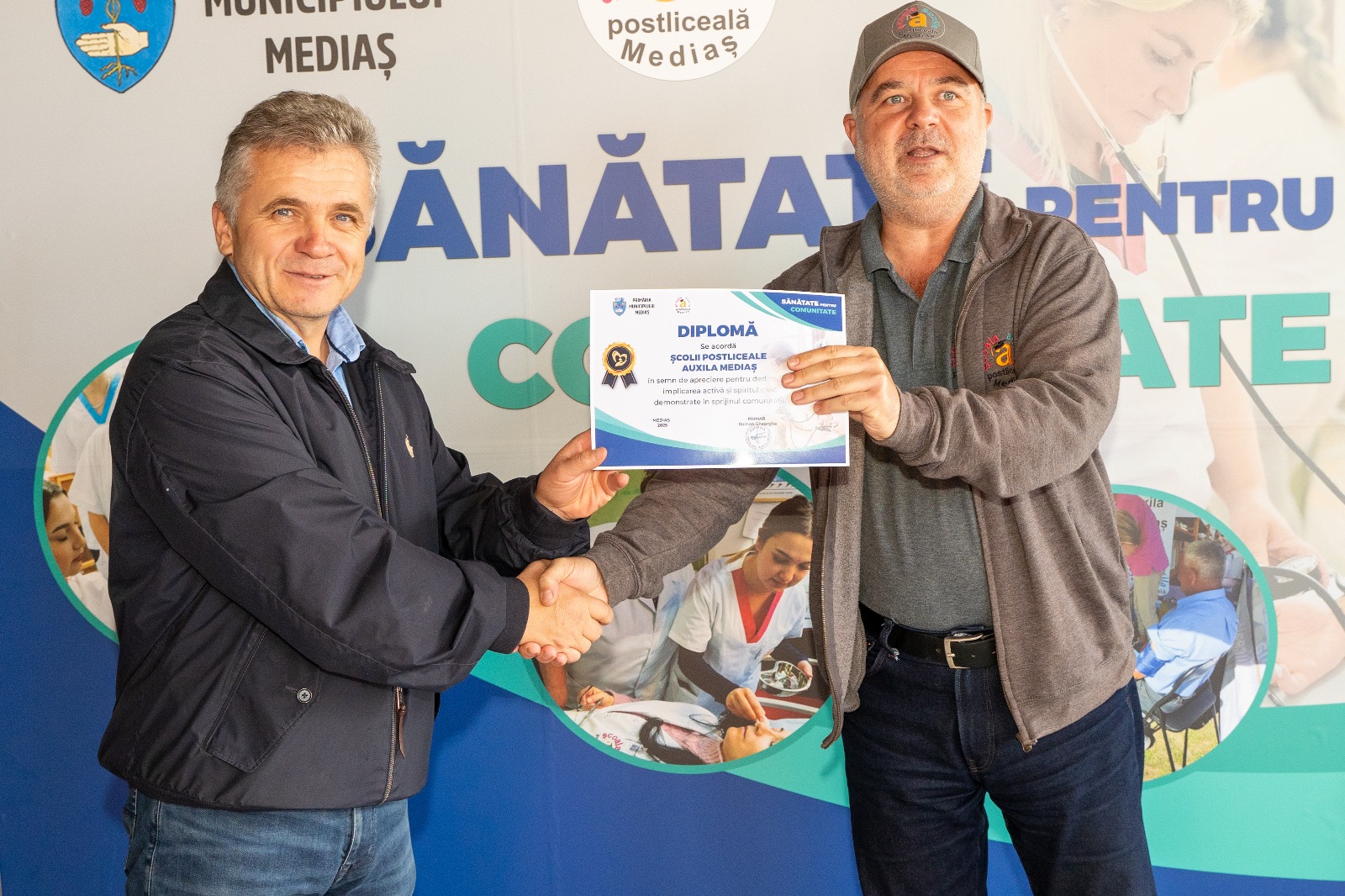 Joi, 18 septembrie, începând cu ora 17:00, elevii voluntari și cadrele didactice de la Școala Postliceală Auxila au fost premiați de către Primăria Municipiului Mediaș, pentru implicarea activă în campania de sănătate publică „Cortul Auxila”. Primarul municipiului Mediaș, domnul Gheorghe Roman, le-a înmânat diplome tuturor celor implicați în buna desfășurare a campaniei.