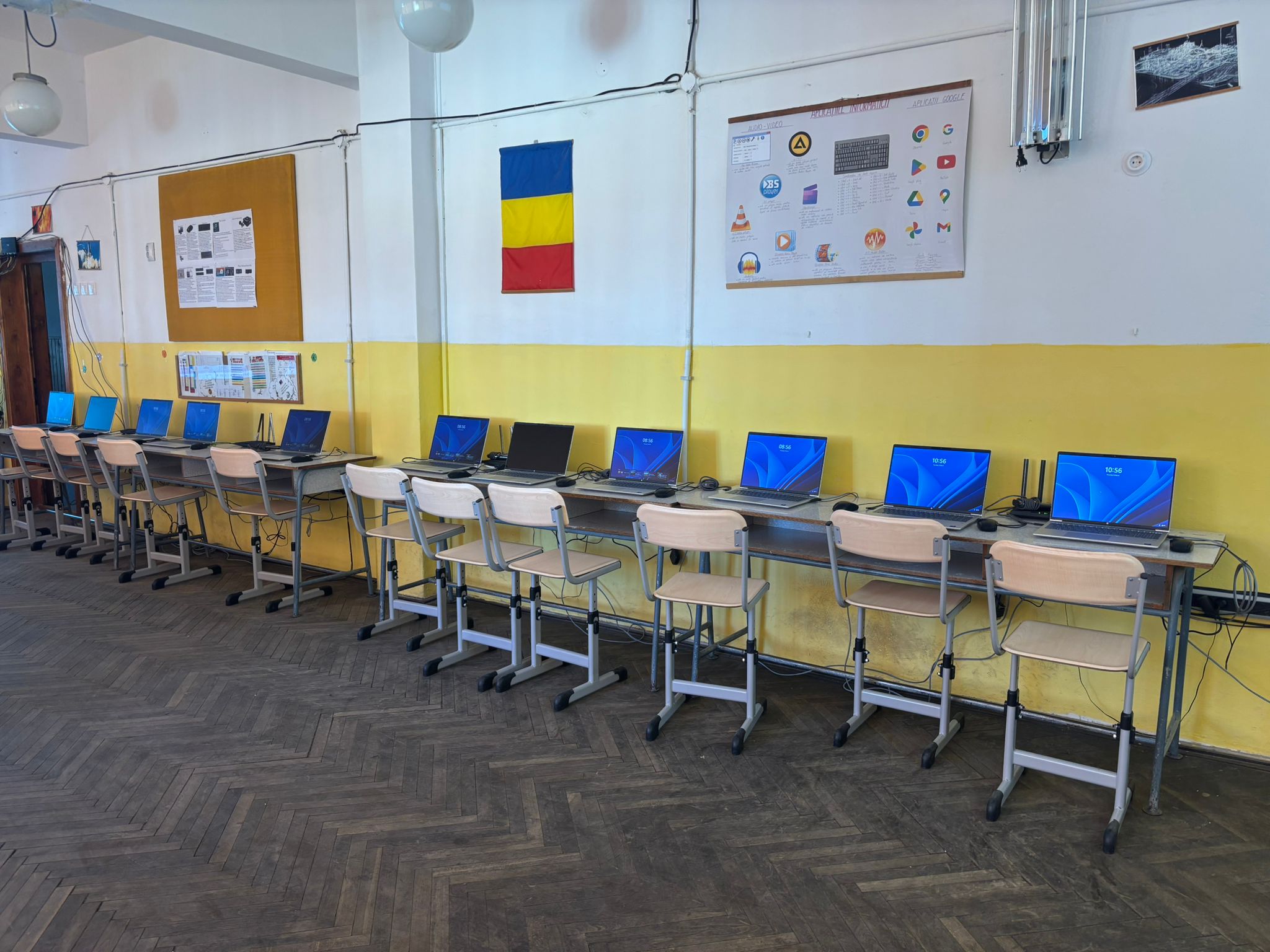 Pentru sălile de clasă au fost achiziționate piese de mobilier în număr mare: 1060 pupitre și scaune pentru elevi, 41 catedre, 11 scaune destinate cadrelor didactice și 40 dulapuri.