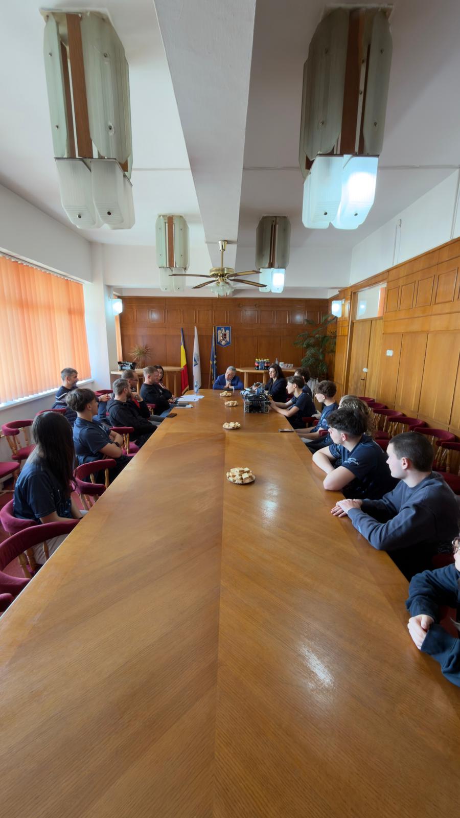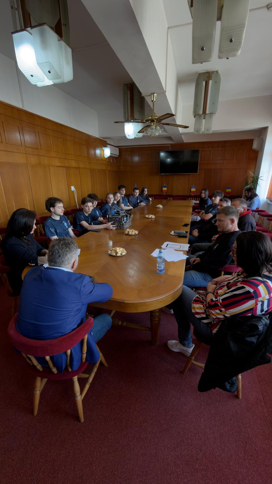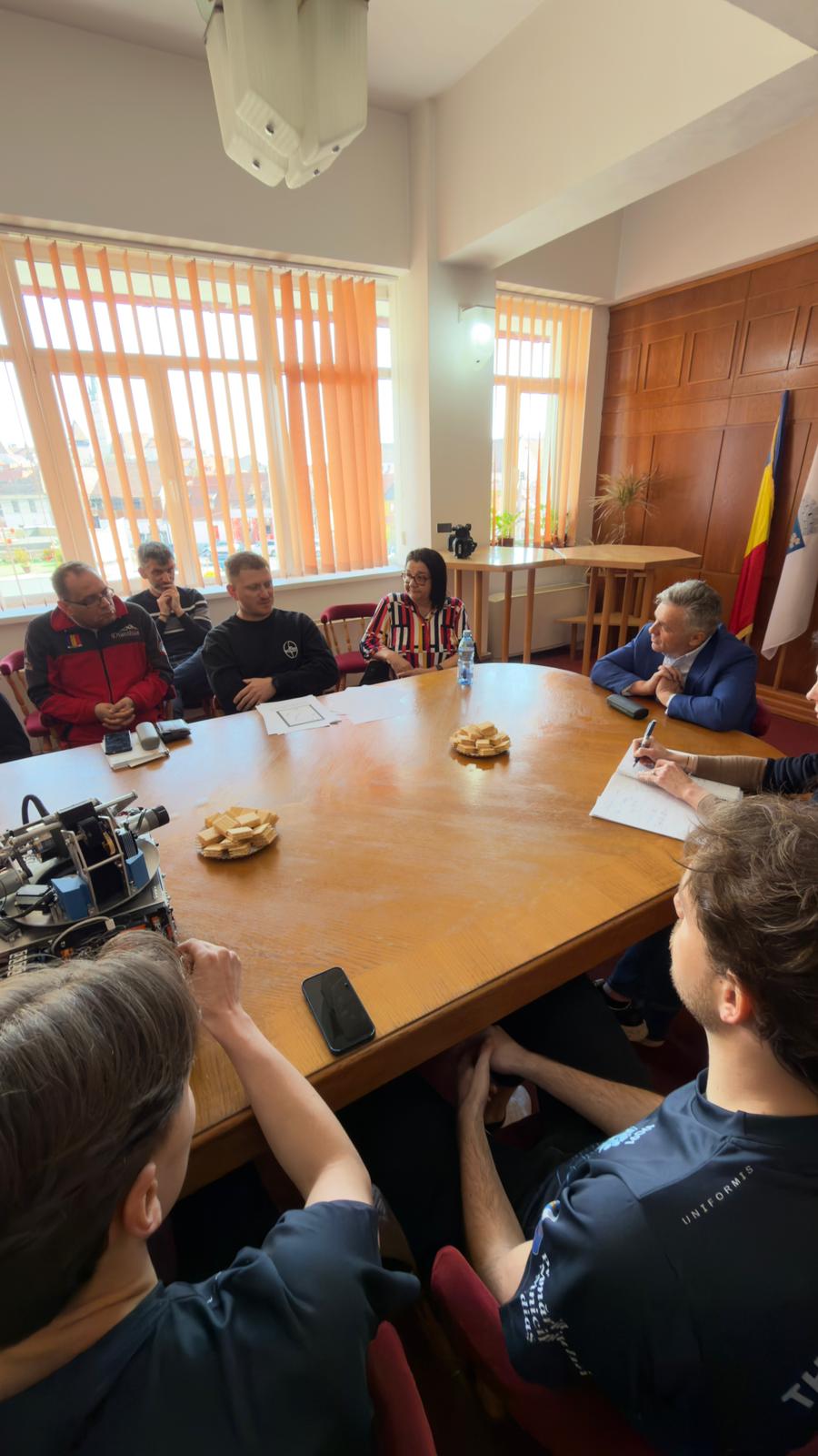 În data de 15 aprilie 2026, la sediul Primăriei a avut loc o întâlnire între primarul municipiului Mediaș, domnul Gheorghe Roman, echipa de robotică „The Resistance” a Liceului Teoretic „Roth-Oberth”, directorul liceului, doamna Aura-Viviana Pântea și reprezentanții cafenelelor The Bean Roasters și Coffee CooP.