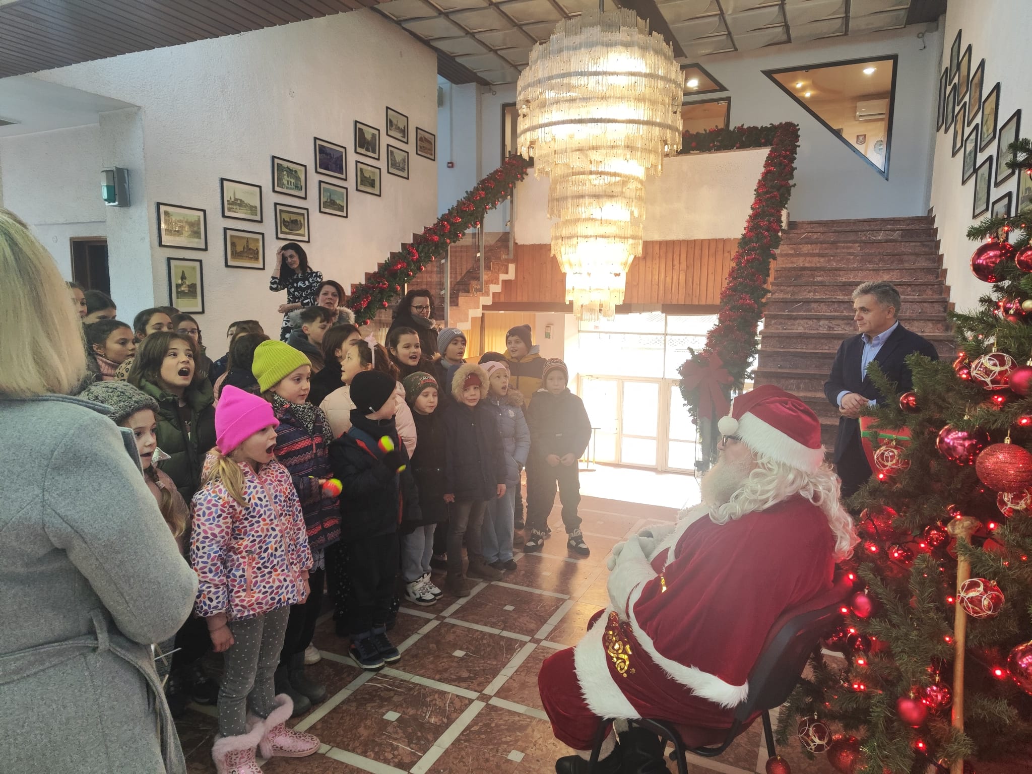 Astăzi, 15 decembrie, primii colindători au sosit de la Grădinița „Rază de Soare”, Școala Gimnazială nr. 4 și Școala Gimnazială „Istvan Bathory”.